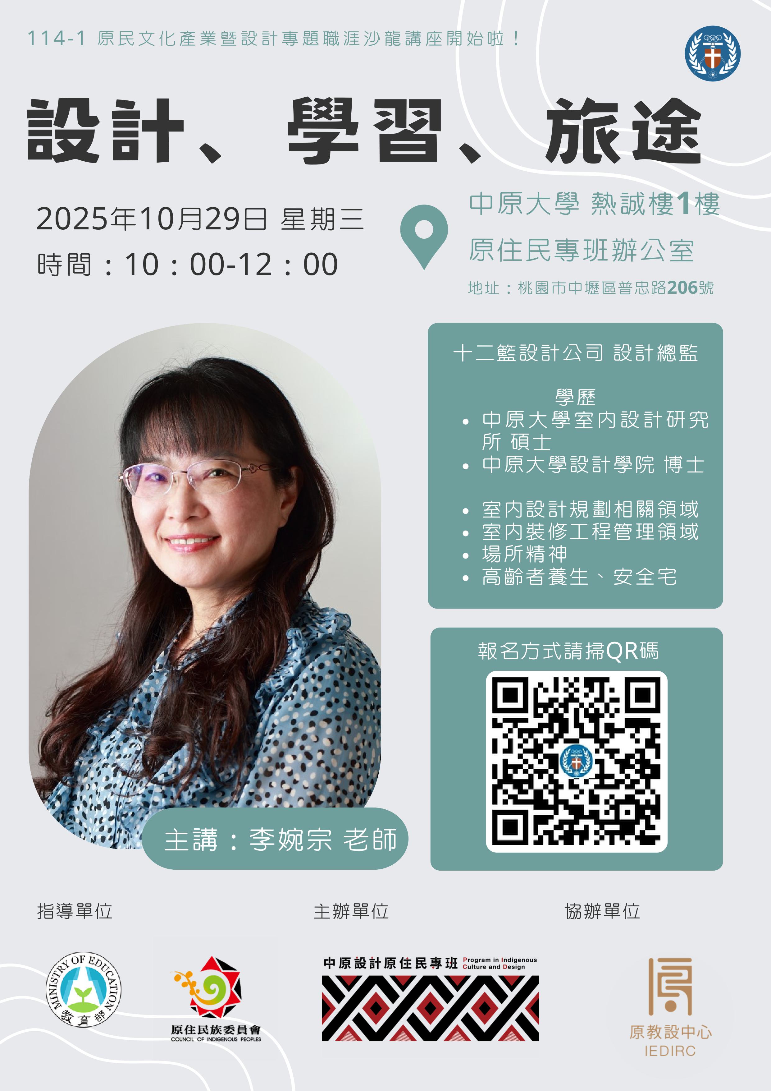 【活動】中原大學-「原民文化產業暨設計專題職涯沙龍講座—【職場培力】設計、學習、旅途」活動
